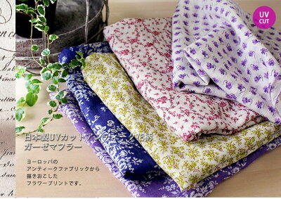 日本製 UVカット アンティーク 花柄 ガーゼ ストール/マフラー ガーゼストール 紫外線対策 紫外線カット UVケア UV対策 ギフト